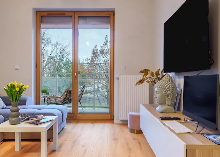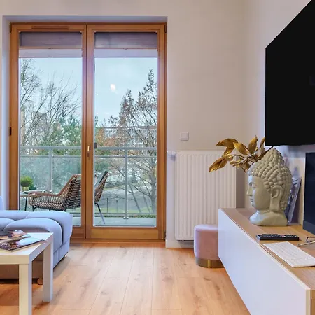 Piekny Apartament Bobrowiecka Z Balkonem offers a full kitchen with an oven and a dishwasher as part of self-catering options. Kierbedzia 02 bus station is 250 metres away.